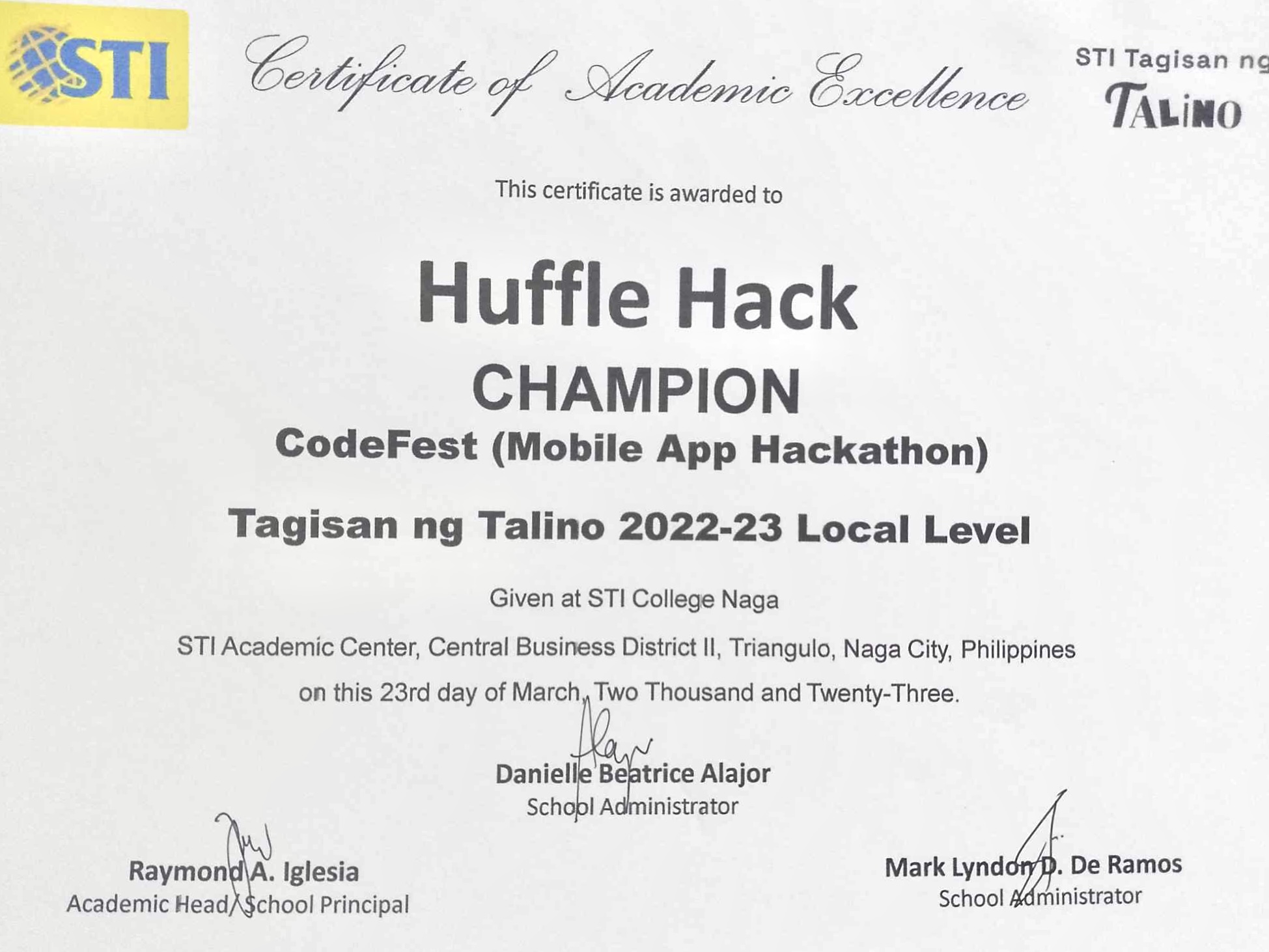 View CertificateChampion – Codefest Local Level 2023